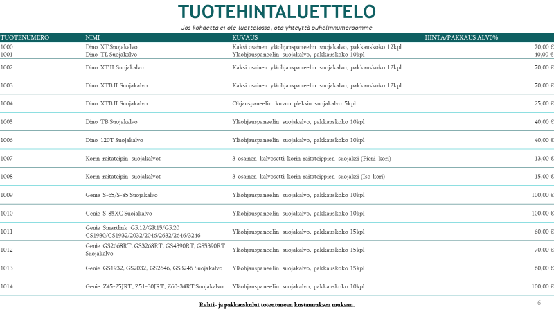 Dinolift henkilönostinten yläohjauksen symboleiden suojakalvot